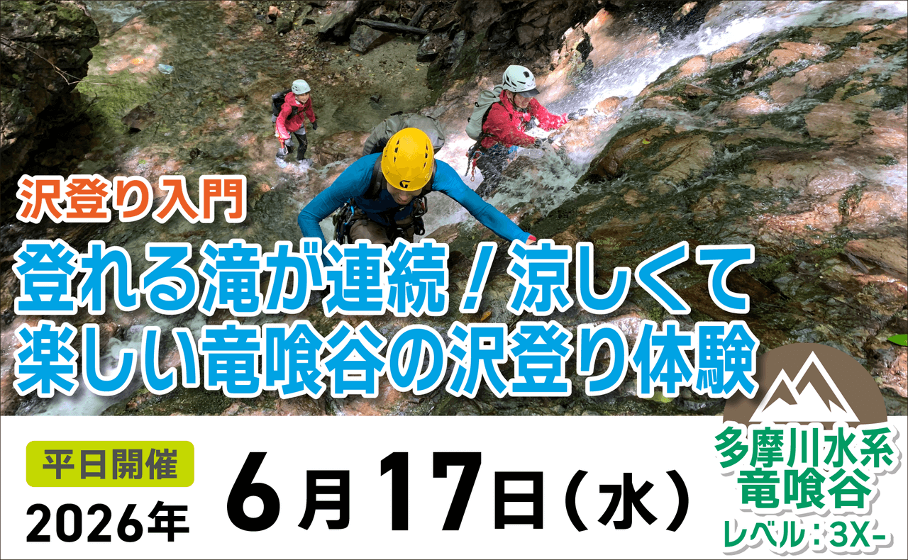 6/17(水) 【沢登り入門】登れる滝が連続!涼しくて楽しい竜喰谷の沢登り体験