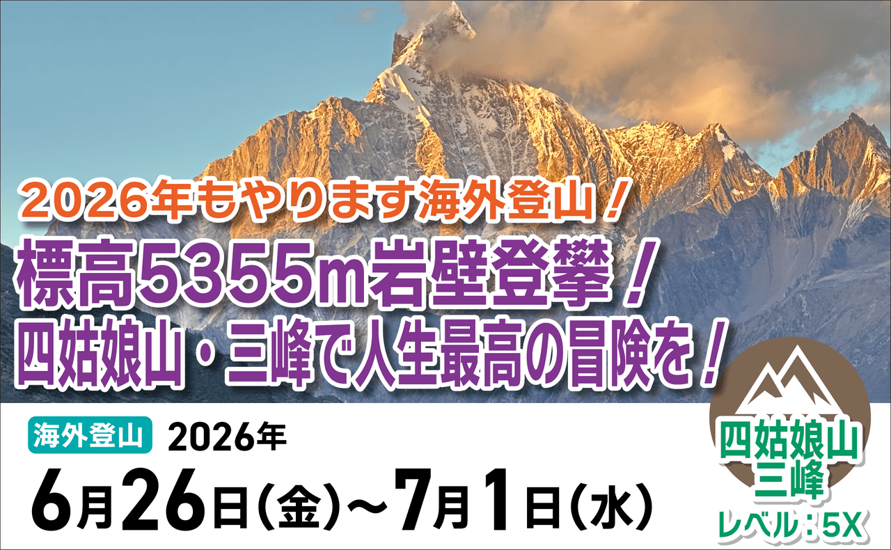 絶賛受付中! 6/26(金)~7/1(水) 【海外登山】標高5355m岩壁登攀!四姑娘山・三峰で人生最高の冒険を!