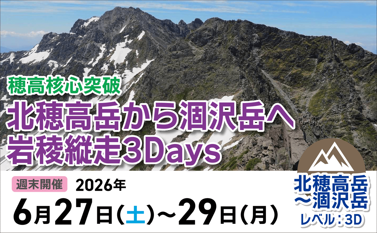 定員間近 6/27(土) ~29(月) 穂高核心突破 ― 北穂高岳から涸沢岳へ岩稜縦走3Days